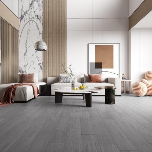 主打以黑白灰为主色调,采用具有设计感的家具,打造出时尚美观的室内空间。搭配灰白色的久盛地板,在喧嚣城市中,感受一番别有风味的寂静之美。