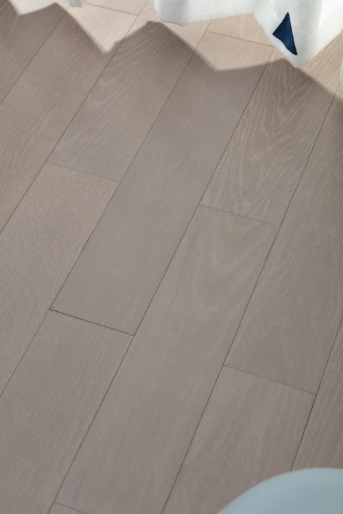 【随心系列】表面有经过了我们特殊工艺处理过的拉丝工艺纹理效果,因此用手感觉它的表面是平面的,几乎没有拉丝痕迹,但看起来又是有着漂亮的拉丝感的。这极大的增强了地板铺装的视觉效果及体验,使其更便于您的风格搭配。