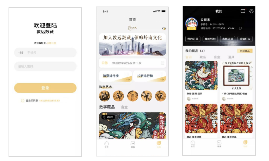 敦远数藏是一家专注于文化艺术的数字艺术铸造平台,由华人艺术家协会、岭南文化艺术家团队和区块链运营团队联袂推出,定位于弘扬中华传统文化元素,在元宇宙世界构建数字化艺术品应用场景。