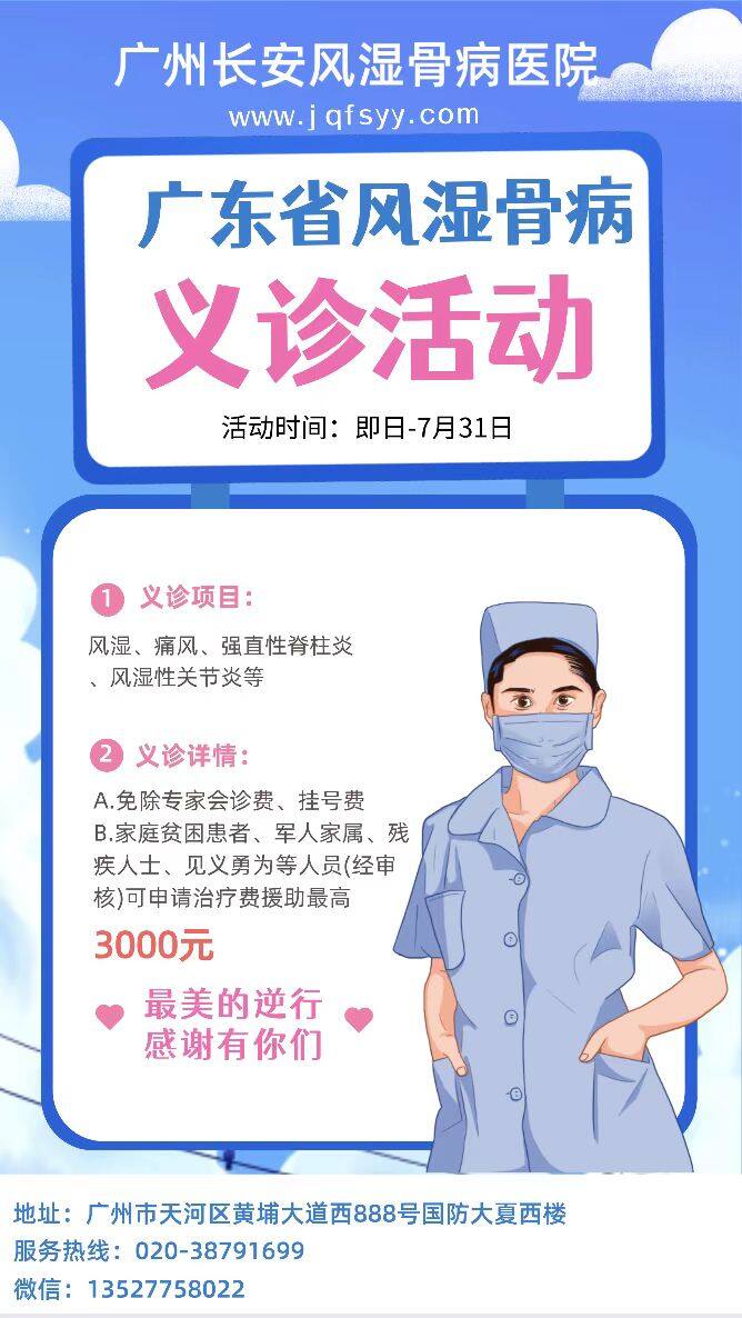 为帮助市民解决类风湿、痛风、强直性脊柱炎、风湿性关节炎等免疫骨病患者困扰问题,“2022年度风湿免疫病规范化诊疗暨公益会诊”在广州长安风湿骨病医院正式启动,旨在帮助更多风湿免疫病患者实现治痛、控制病情不复发的愿望。