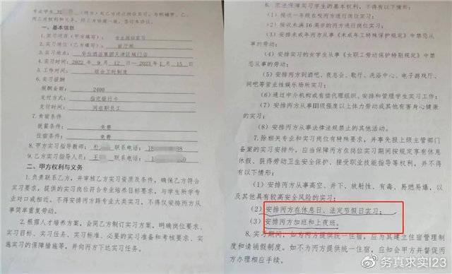 据悉,孩子系天津职业大学旅游系21级一名大二的学生,2022年9月因学校实习要求进入天津和平区津湾广场的漫心酒店实习,并签订了三方协议。该协议显示,实习岗位为酒店前厅部,企业实习指导人员为王某,报酬每月2400元。但协议中,并无学生以及家属签字。其中,关于依法保障实习生基本权利一栏明确指出,企业方不得安排实习生在休息日、法定节假日实习,不得安排实习生加班和上夜班。为什么一个正值青春年少精力充沛的大学生实习会猝死呢?