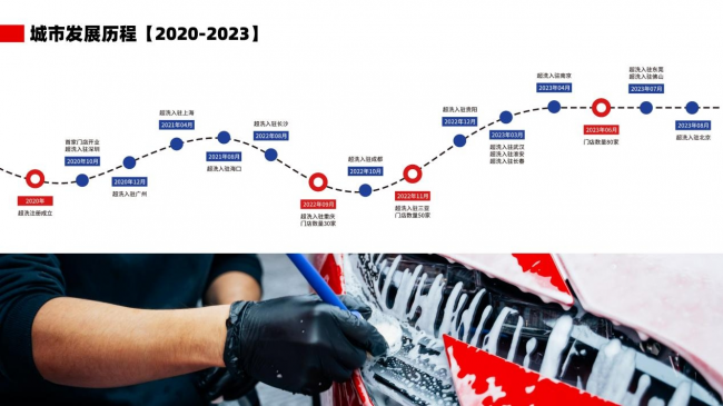 2020年,方毅带领之前的核心成员卷土重来,创办超洗品牌,截止2023年10月,已在全国16座城市,布局100+门店,累积用户15w+。超洗互联网+汽车美容的创新模式,经受住市场竞争的惊涛骇浪,以席卷之势颠覆传统洗车行业,在汽车后市场谱写绚丽华章。