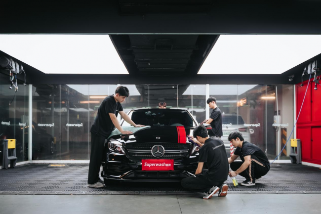 针对授权门店,超洗团队提供品牌输出、人员培训、客户引流等服务,主要是为同行进行赋能。目前已有十家左右的传统贴膜店和维修店,经过超洗内部审核后,将洗美区域改造成超洗模式。