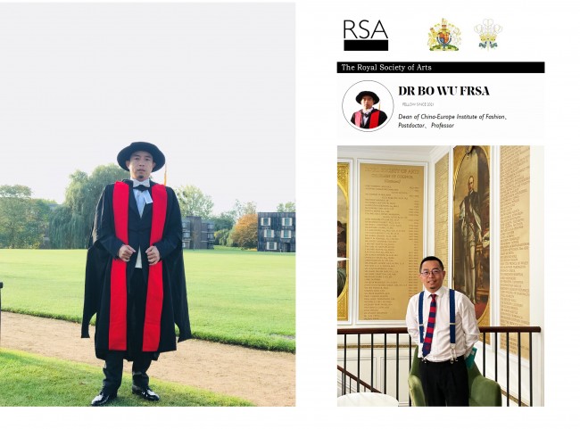 吴波博士是中国时尚艺术界唯一当选的终身院士,以表彰其在中欧时尚艺术、国际教育及学术研究等方面所做的突出贡献与努力。英国皇家学会工艺院遵循皇家宪章要求,终身院士将被授予Life FRSA勋衔,入选英国皇家学会工艺院终身院士(RSA Life Fellow)代表了其在艺术、商业和社会科学领域所获得了最高学术荣誉。